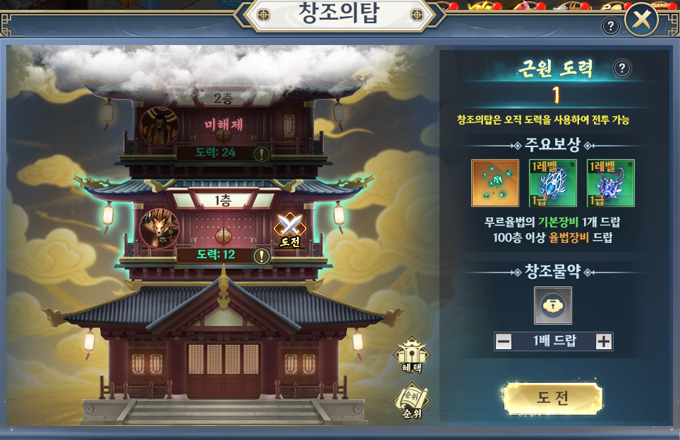 창조의탑 시스템이 추가되며 창조의탑에서는 율장비를 획득하실 수 있습니다.