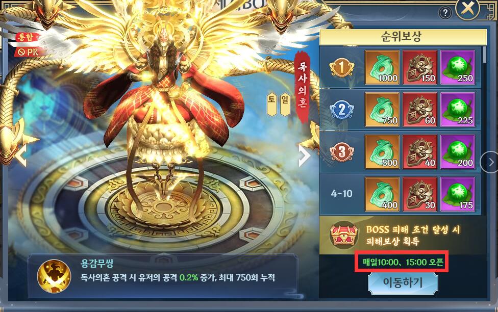 기존 세계BOSS 진행 시간: 매일 10:00, 15:00 총 2회 진행